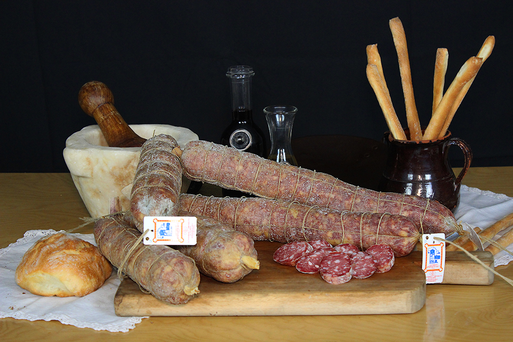 Tipico prodotto canavesano richiamano la tradizione rurale, nelle due versioni con e senza uvetta, entrambe avvolte nella retina di maiale.