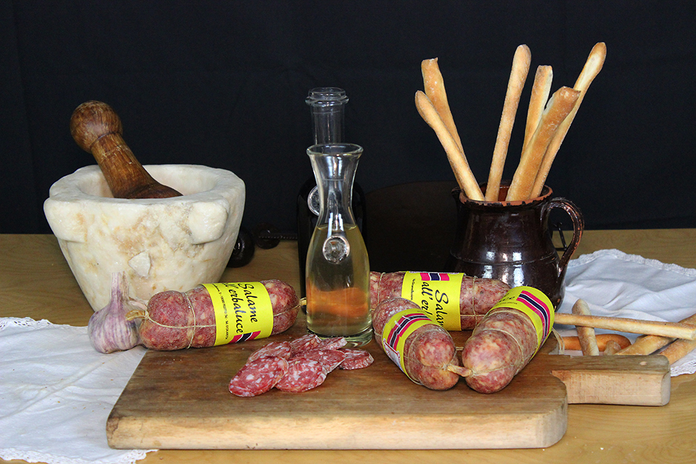 Piccolo salame stagionato che riprende la tradizione valdostana. Prodotto con una ricetta di barbabietole cotte, patate e carne viene venduto in file da 5 o singolarmente al dettaglio.